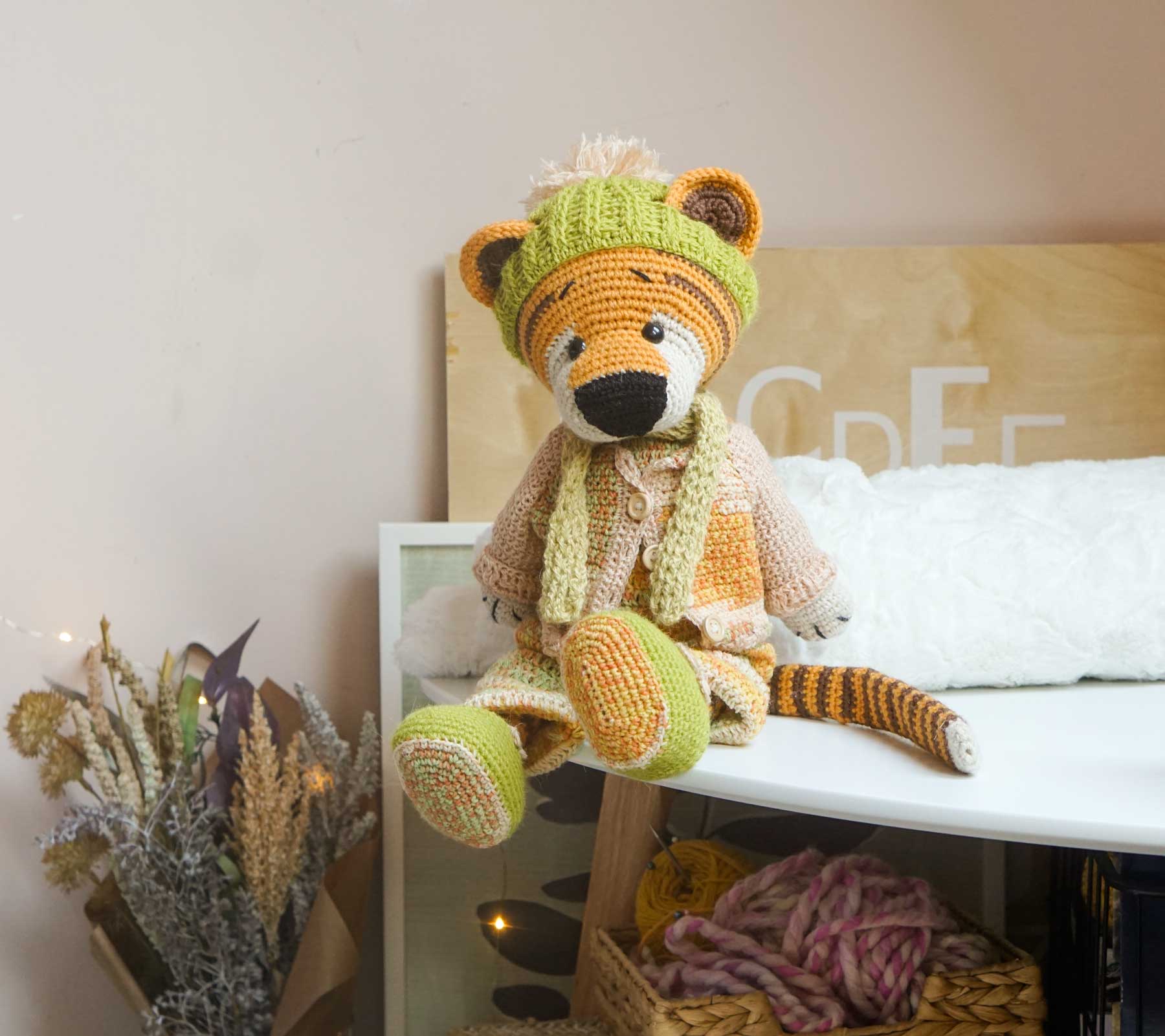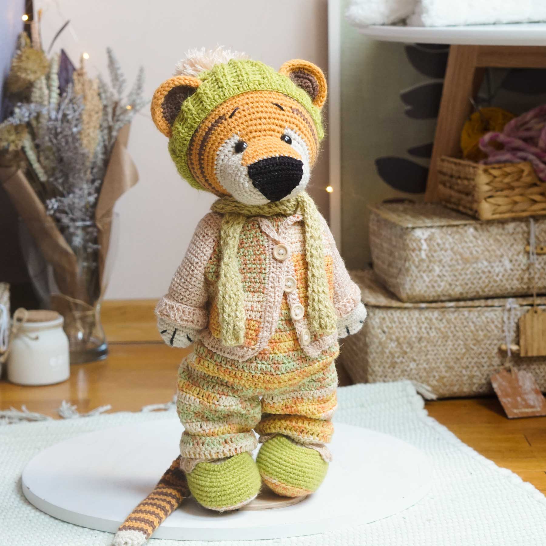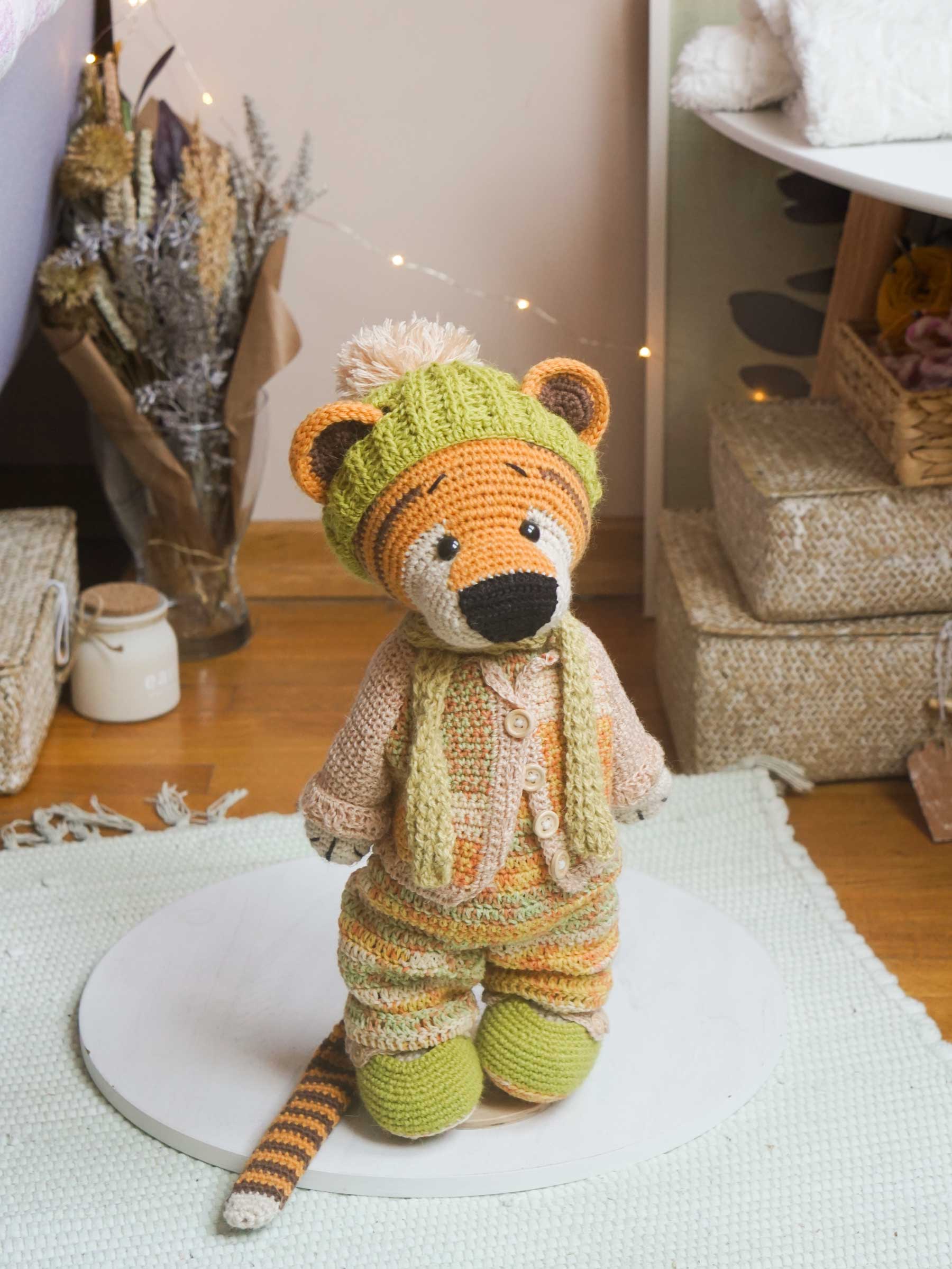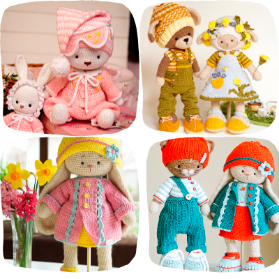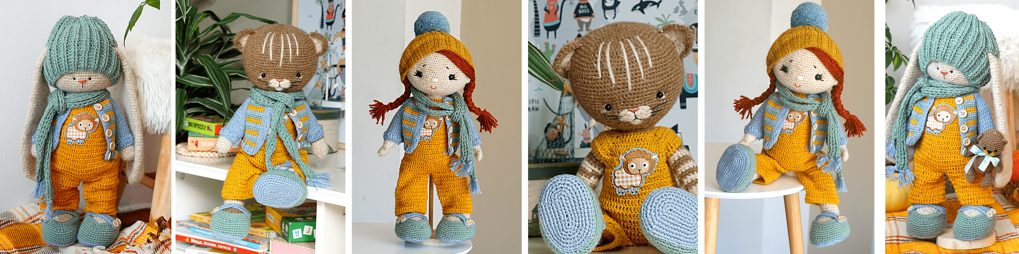 This crocheted clothes set fits crocheted and knitted bunny, kitty, puppy, doll, lamb, tiger toys