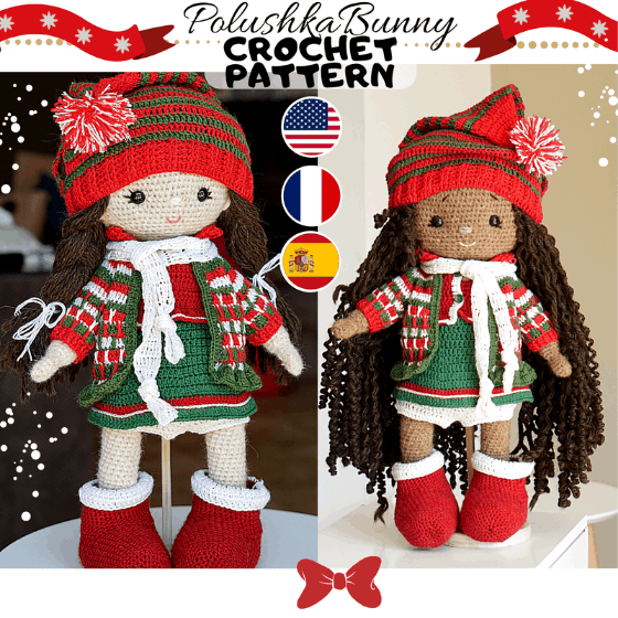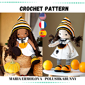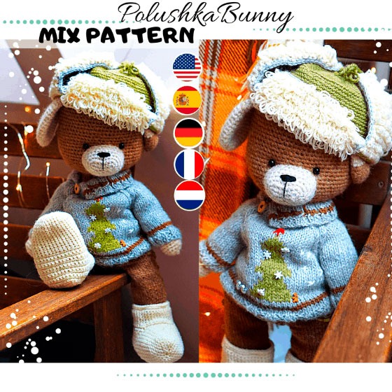 As well, there is a middle size toy - crocheted mouse. Its size is 30cm/12''. There is 2 crochet outfits for the mouse - Easter outfita and Christmas Mimi Outfit