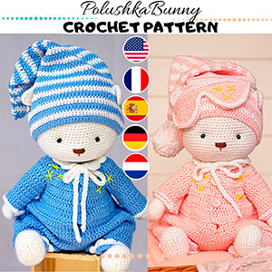 There are 2 different sizes for Polushkabunny toys and toy clothes - SMALL and LARGE. All Patterns for the small toys marked as "BABY".