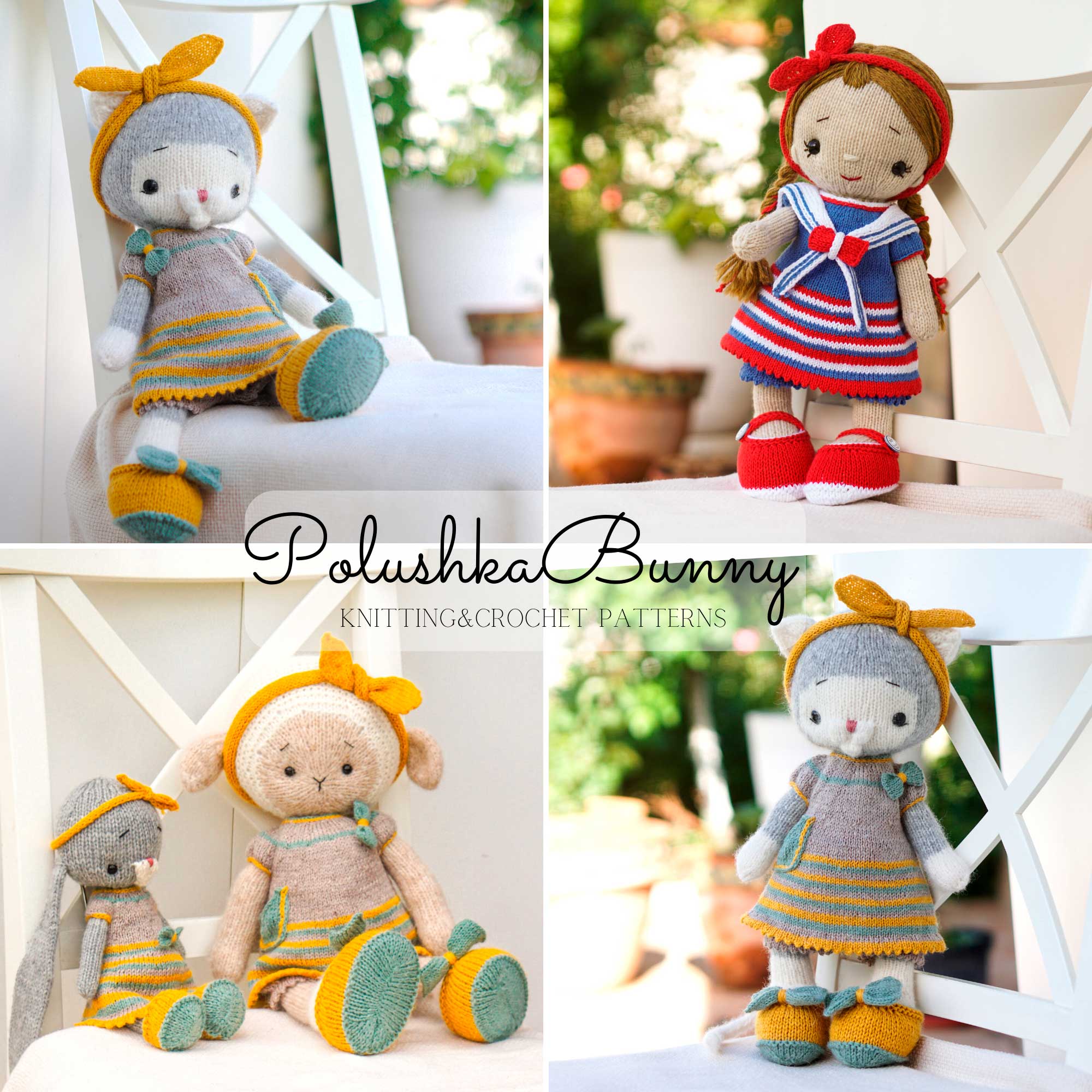 This outfit fits Knitted and crocheted Doll, Bunny, Kitty, Lamb, and Puppy Toys by Polushkabunny