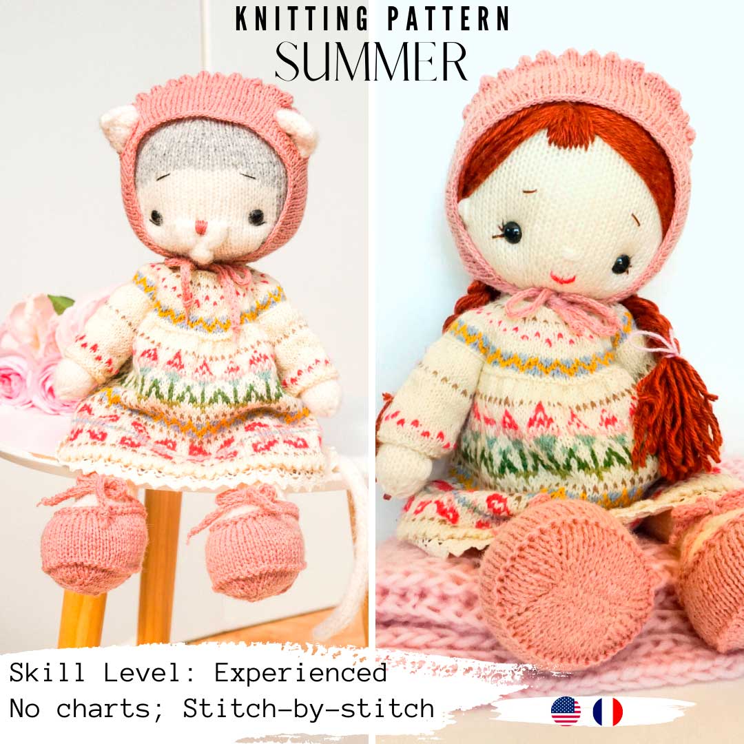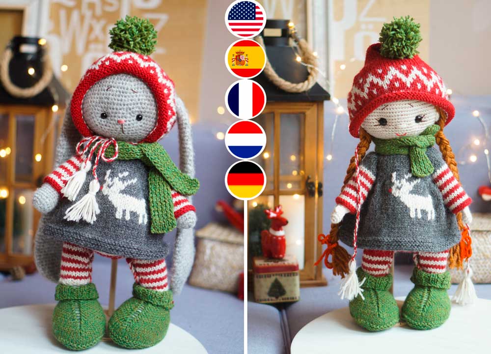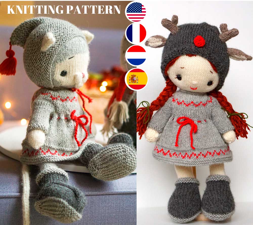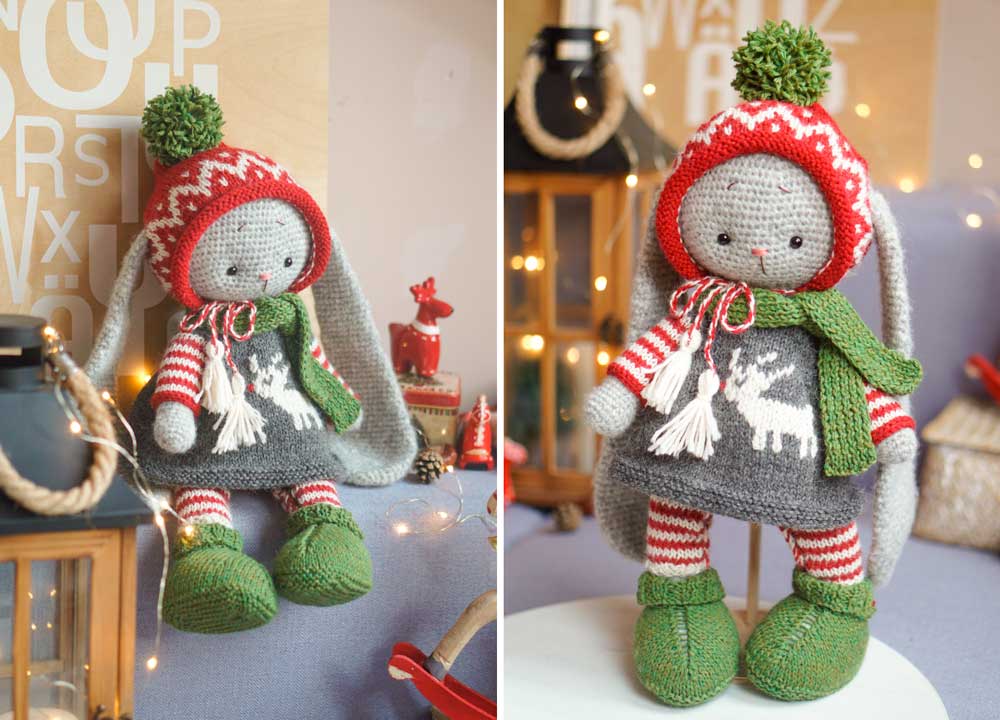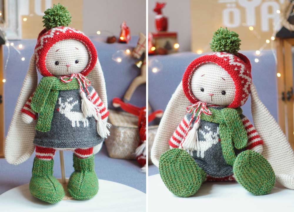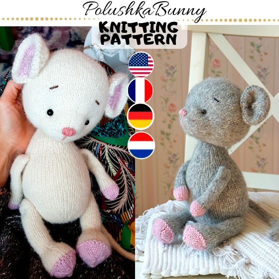 Clothes fit knitted and crocheted toys with the height - 38-40cm (15-16'') Bunny/Doll/Kitty/Puppy/Lamb and the knitted mouse(33cm/13'')