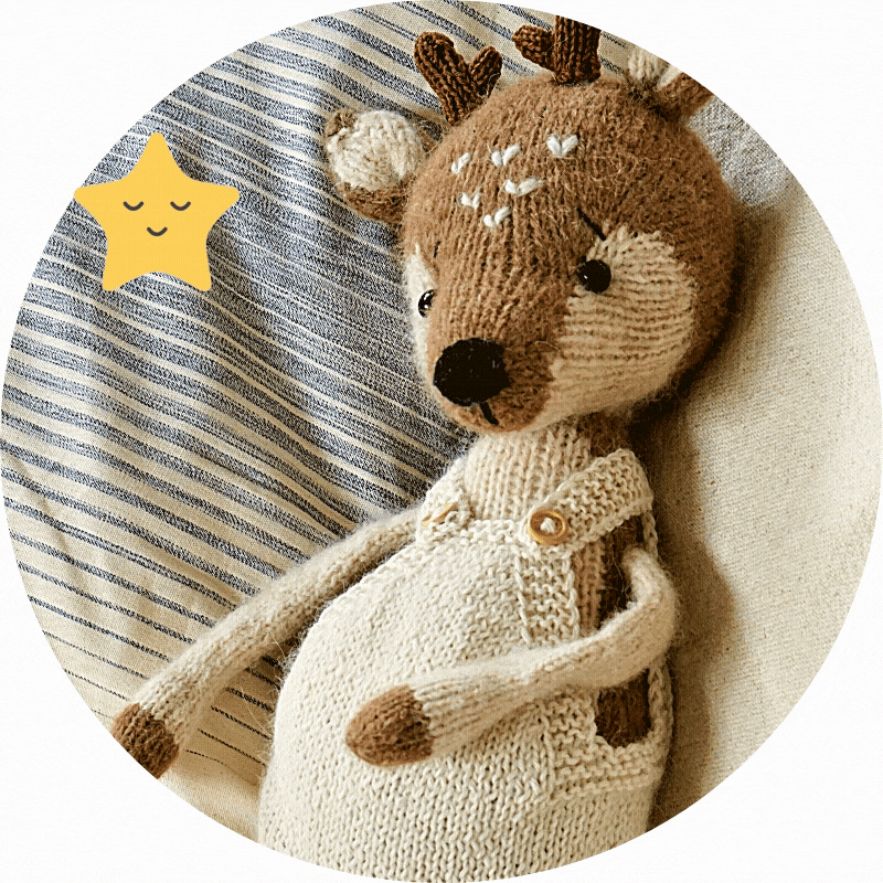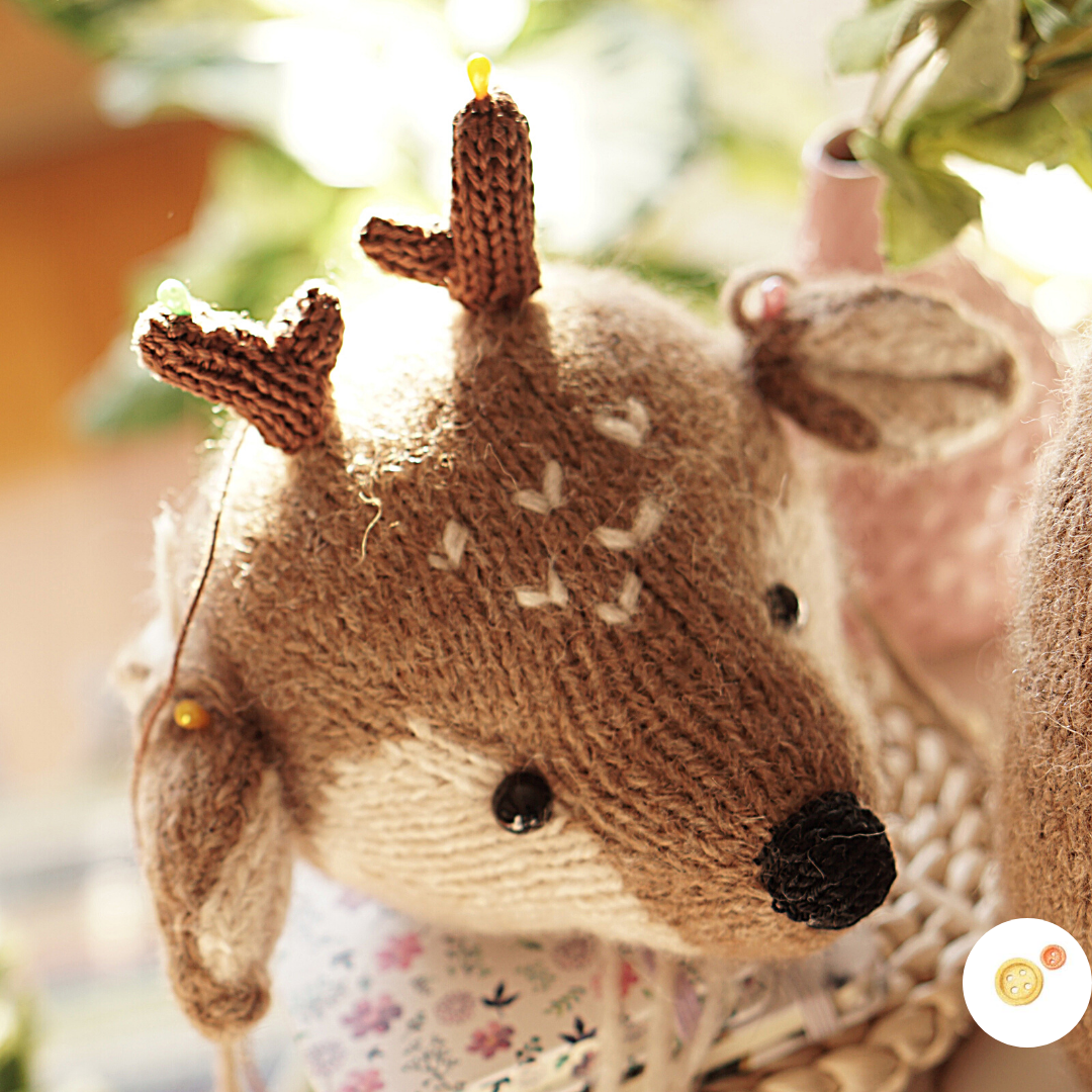 Now, when all the details are ready, here comes the most fun part! Our toy is about to come alive! But first we need to shape its head and place safety eyes, embroider its nose. And the final touch – fur spots that will make your reindeer look irresistibly cute. Step by step instruction and beautiful pictures of the making process are included.