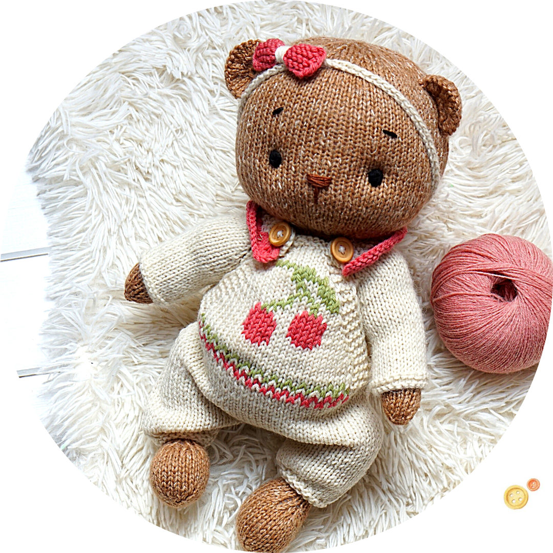 Take the yarn type that is stated in my pdf description. We don’t use it often for making toys. But the result will make you happy; it will give you a thrill of a new experience. Next time you might want to make something bigger than a toy outfit, something for yourself – some kind of a throw blanket or even a cardigan. It is a pleasure to knit, I promise you will enjoy it a lot.