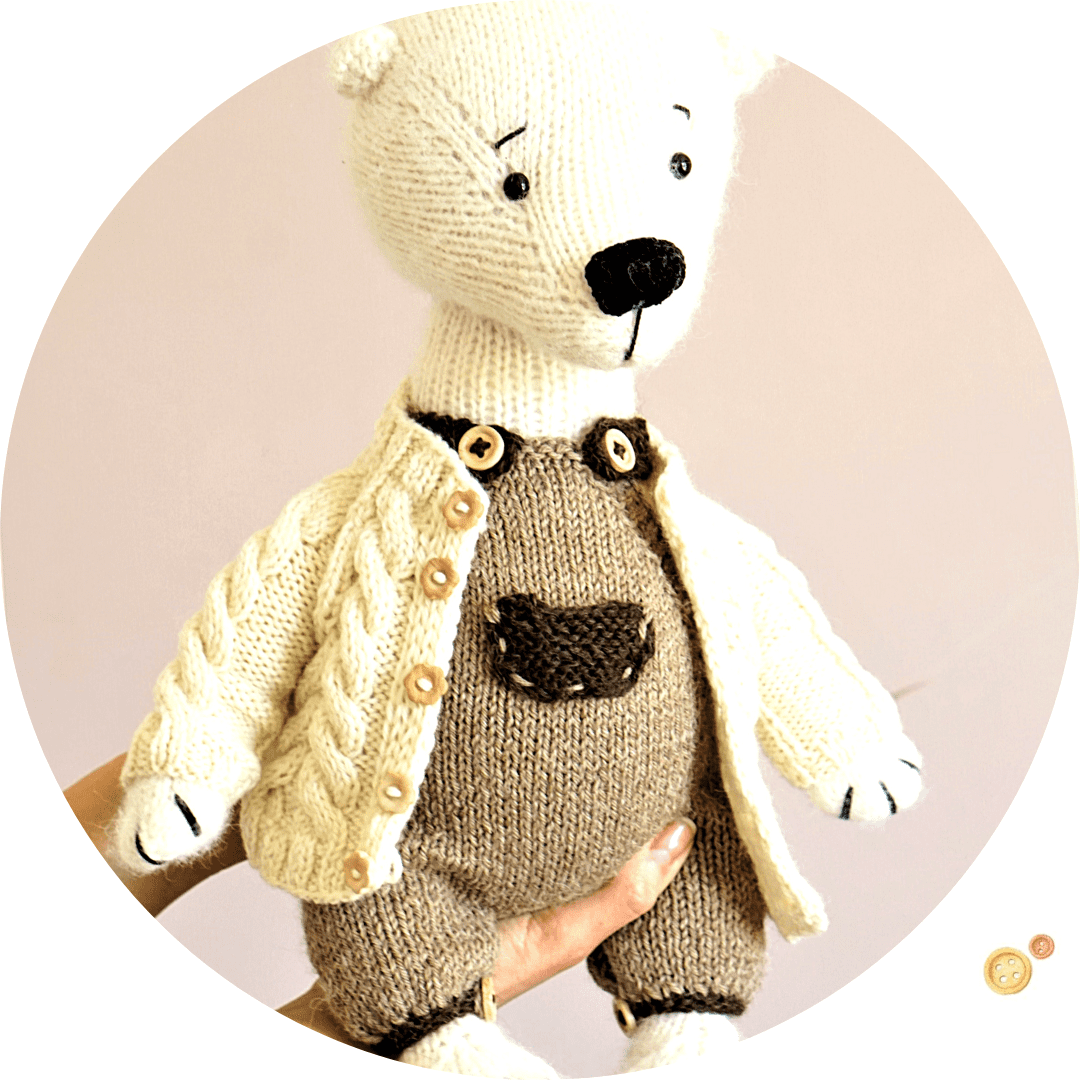 You can knit it white – it will be a polar bear then. Or dark brown – like a real grizzly bear. You are the one to decide about its kind and nature, my task is to help you creating this beautiful toy. So, let’s start.
