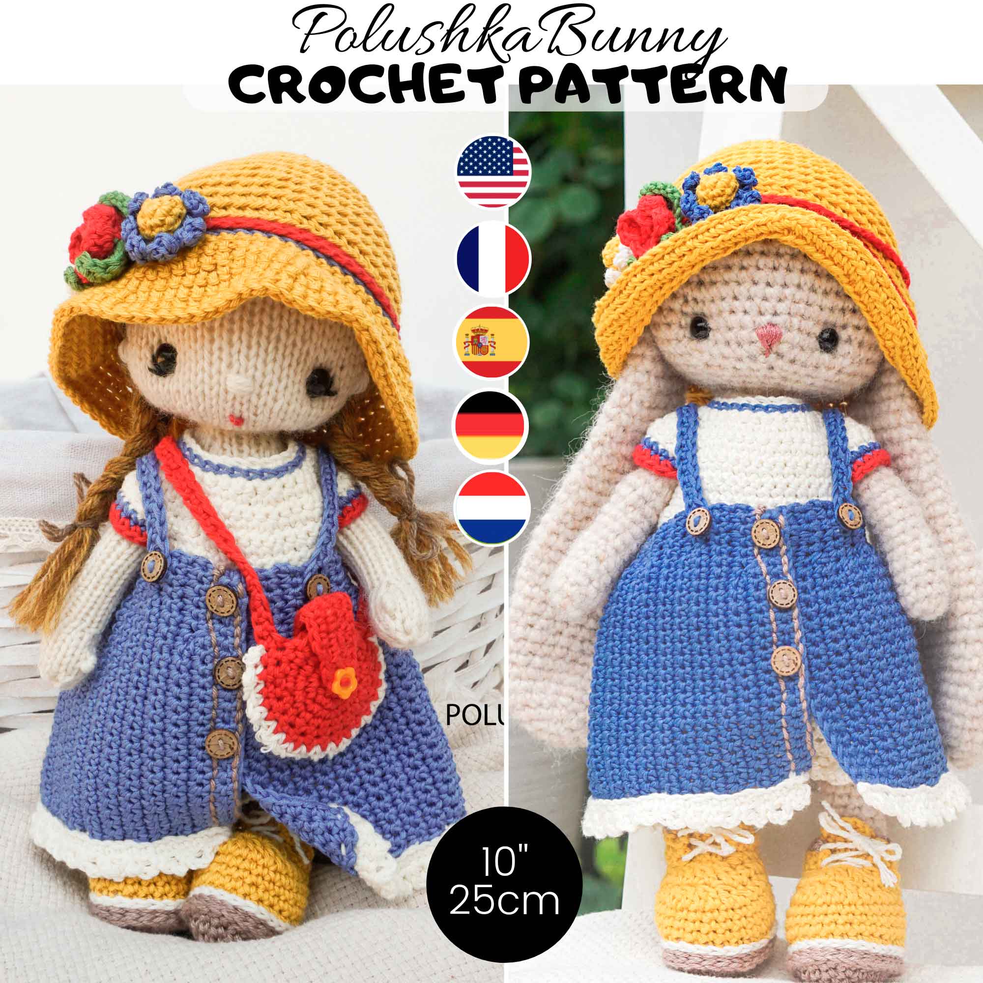 PolushkaBunny/Crochet Pattern + Video Bonus - Baby Bunny 10''/25cm