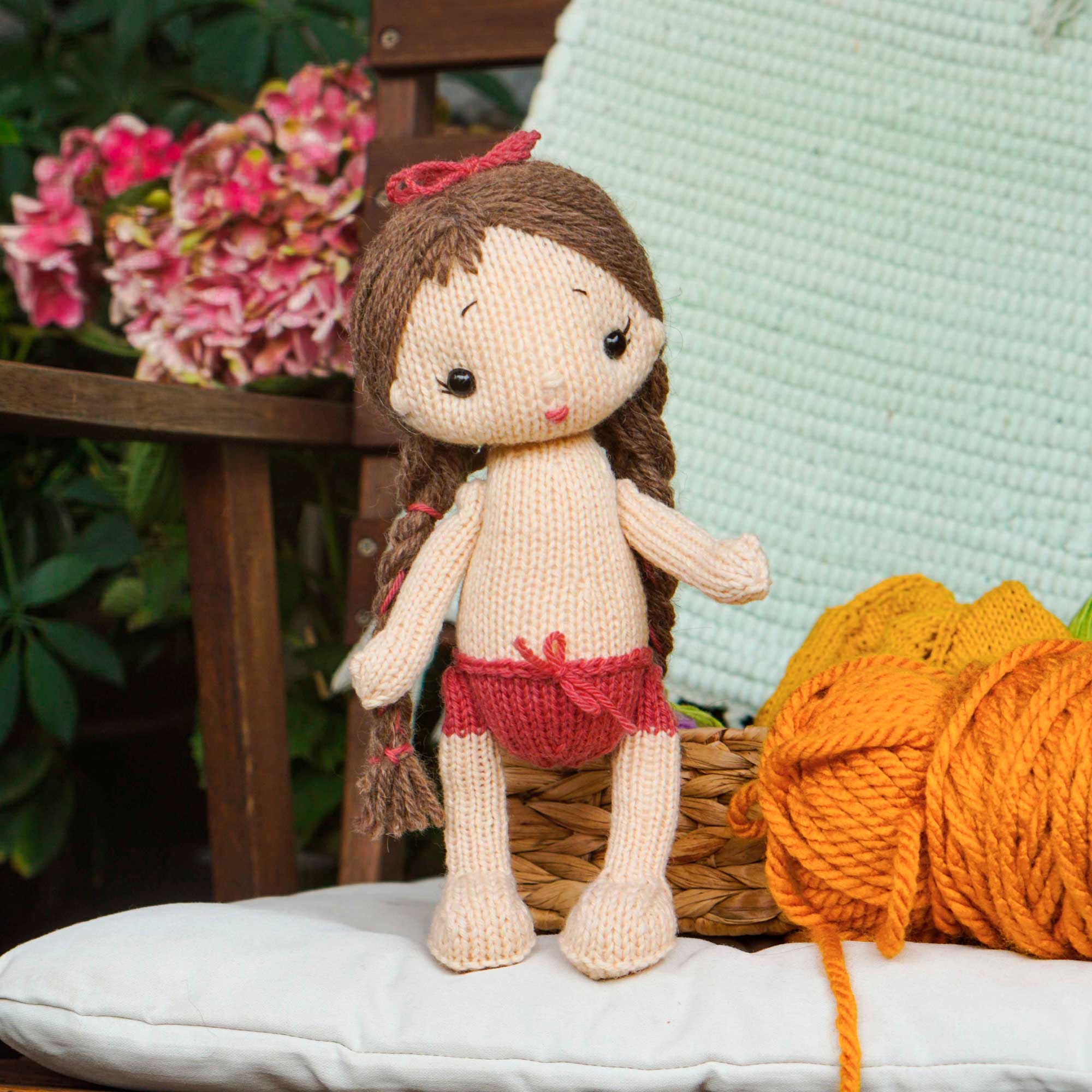 - Для ресничек/бровок/ротика понадобится немного пряжи розового и коричневого цвета